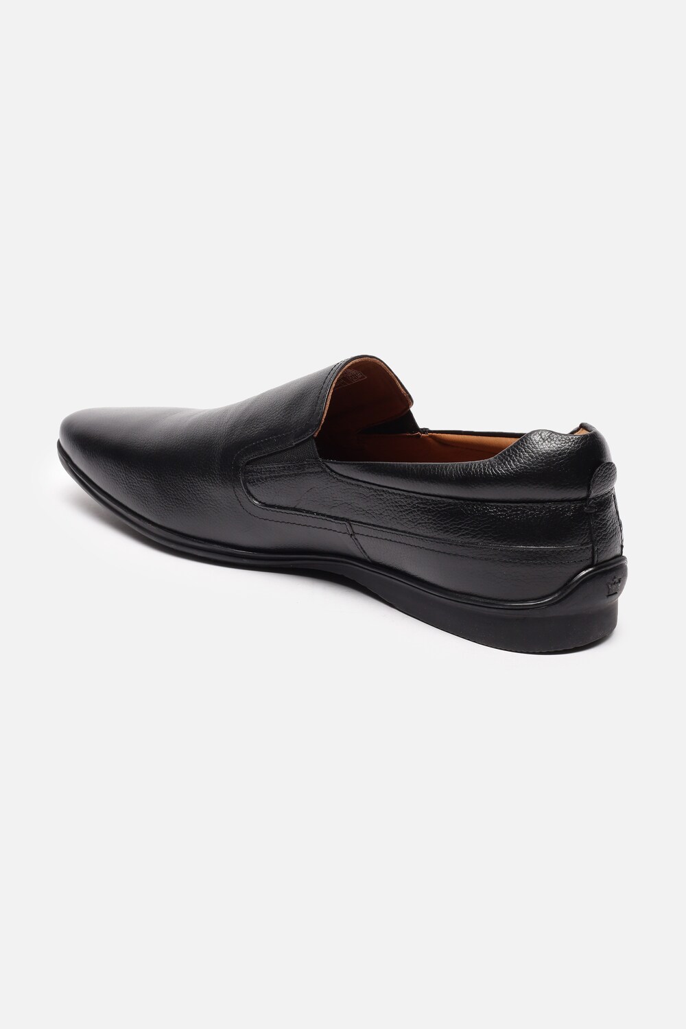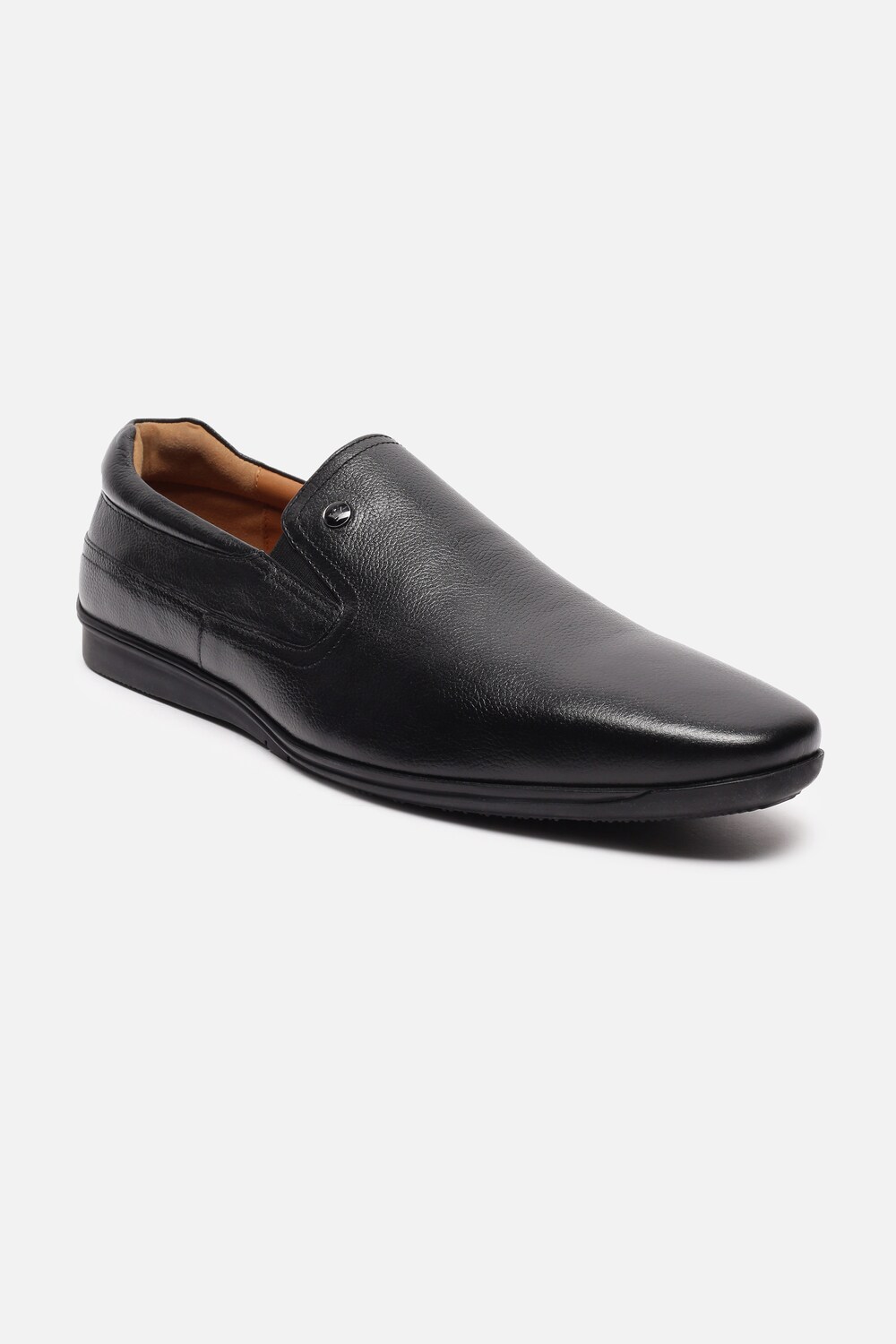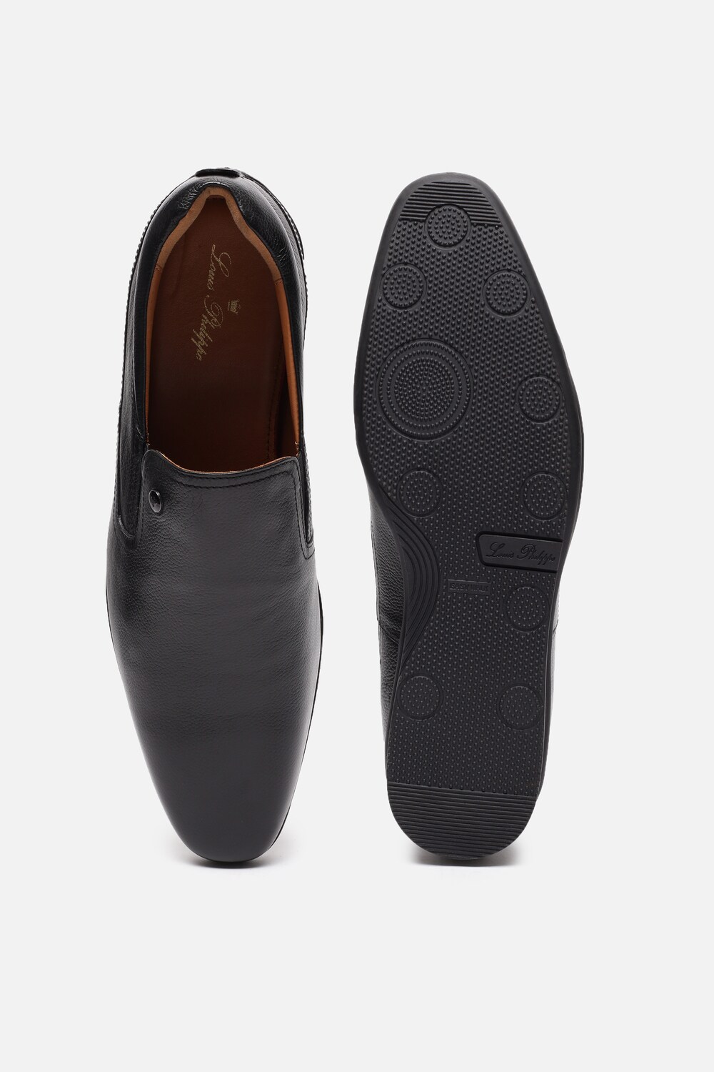 Slip into sophistication with these meticulously constructed slip-on shoes by Louis Philippe. Their sleek black leather exterior features a textured finish, elevating any casual look. Designed for modern gentlemen, these slip-ons deliver all-day ease without sacrificing style. The durable tpr sole offers impressive grip, ensuring your steps are confident wherever life leads. Elevate your footwear game with this timeless addition to your collection, enhancing both comfort and flair for every occasion.